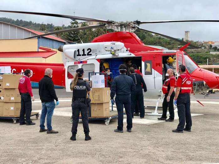 En un comunicado la Consejería destaca que la distribución del material, que partía desde un almacén central de Tenerife, se ha realizado con la ayuda del GES y del CECOES, que ha desplegado sus helicópteros para el traslado del material a todos los puntos del archipiélago al mismo tiempo.