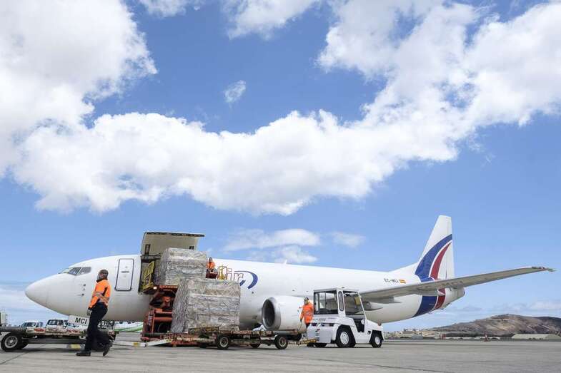 Telde.- El Gobierno canario ha recibido este domingo en el aeropuerto de Gran Canaria otro cargamento con material sanitario, el tercero que llega desde el viernes, que, procedente de Shangai, aterrizó con 18.500 kilos para hacer frente a la propagación del coronavirus Covid-19.