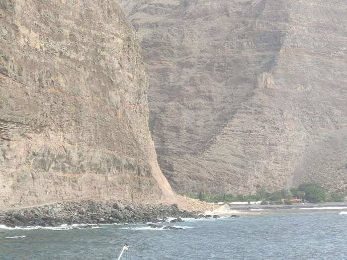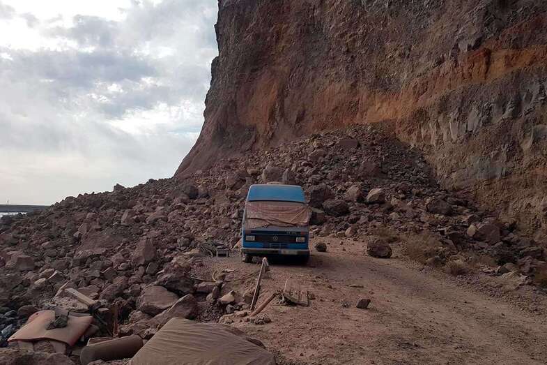 Telde.- Un impresionante derrumbe de tierra de grandes dimensiones se ha producido durante la tarde de este sábado en la pista adyacente a la playa de Argaga, en el término municipal de Vallehermoso y frente al puerto de Valle Gran Rey, en la isla de La Gomera. Se trata de una zona frecuentada por caravanas.