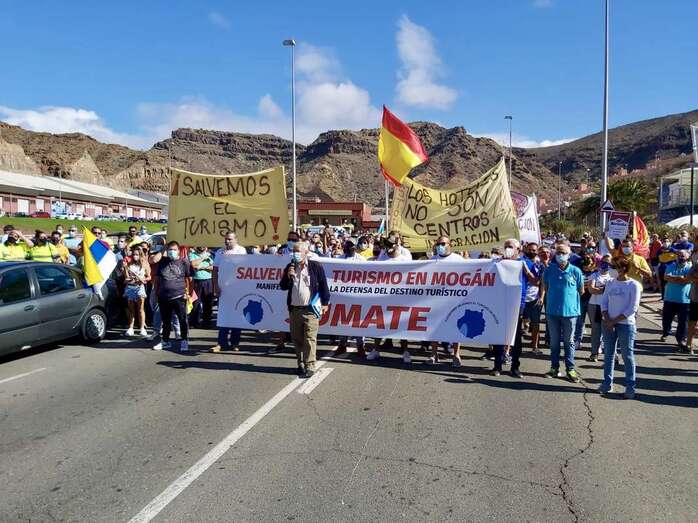 Por otro lado, este viernes ha tenido lugar la manifestación convocada por la Plataforma 'Salvemos el turismo en Mogán' que reivindica que hoteles y complejos de apartamentos del municipio recuperen su uso turístico.