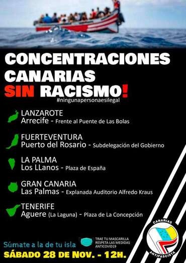Estos actos tendrán lugar a las 12.00 horas para "denunciar la oleada de manifestaciones racistas" que han secundado en las últimas semanas "algunos segmentos" de la sociedad canaria "fomentados, principalmente, por determinados medios de comunicación y partidos políticos a raíz de la crisis humanitaria" que se vive en las costas del archipiélago, afirman los convocantes en un manifiesto.