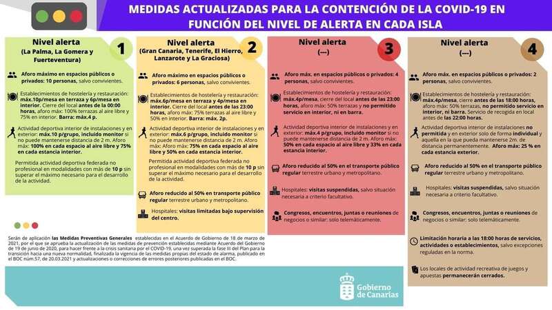 Consulte aquí las medidas actualizadas para la contención del Covid en función del nivel de alerta de cada isla