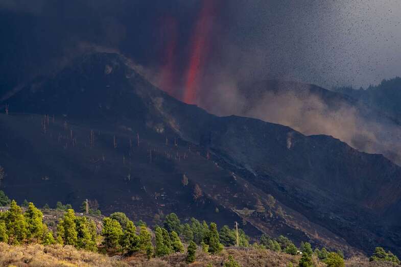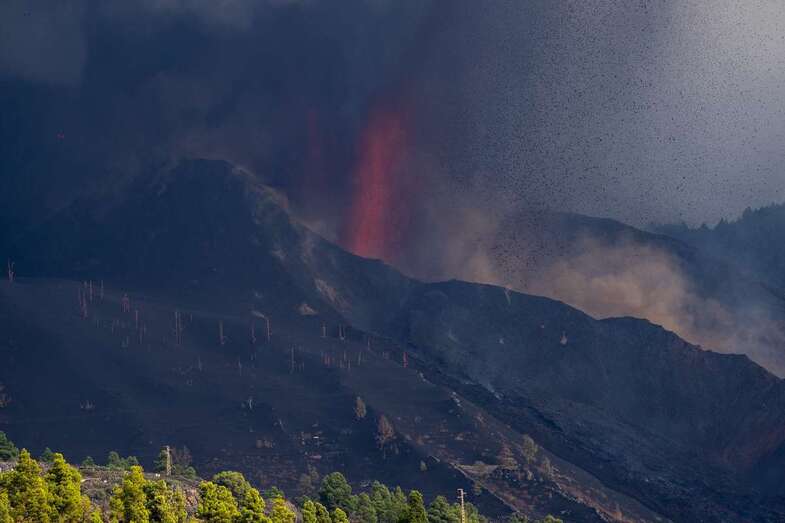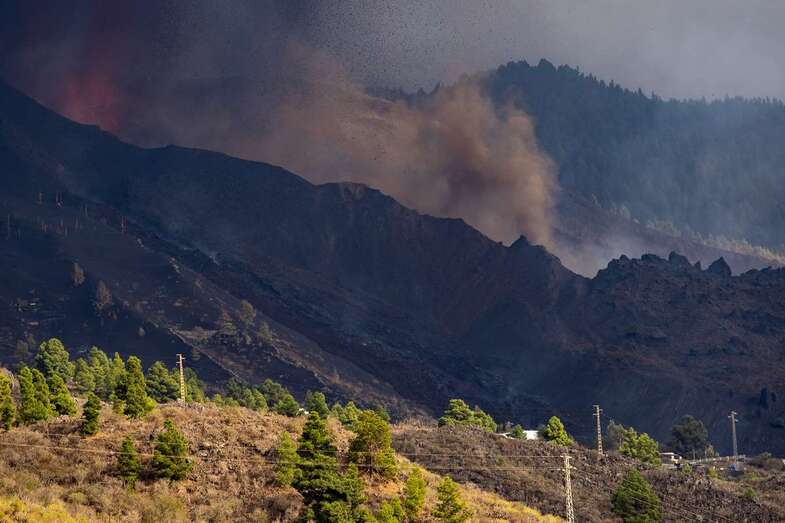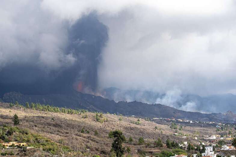 La lava del volcán que erupcionó hace una semana en la zona de Cumbre Vieja, en la isla de La Palma, ha cubierto unas 210 hectáreas de terreno, pero el área que cubren las cenizas se extiende por 1.314 hectáreas, según las últimas mediciones del sistema de satélites de observación terrestre europeo, Copernicus.