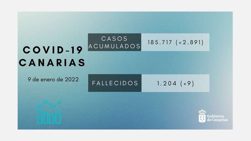 La Consejería de Sanidad del Gobierno de Canarias contabiliza de manera provisional este domingo 2.891 nuevos casos de coronavirus COVID-19. El total de casos acumulados en Canarias es de 185.717 con 65.299 activos, de los cuales 65 están ingresados en UCI y 480 permanecen hospitalizados.