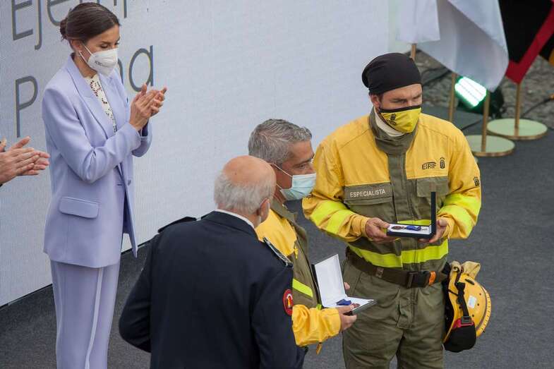 El rey ha trasladado su agradecimiento y el de toda España a los colectivos que trabajaron para hacer frente al volcán y que han recibido el reconocimiento a su labor al haberles hecho entrega los reyes de 39 medallas al mérito de la protección civil.