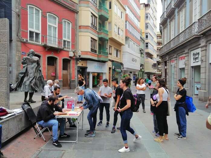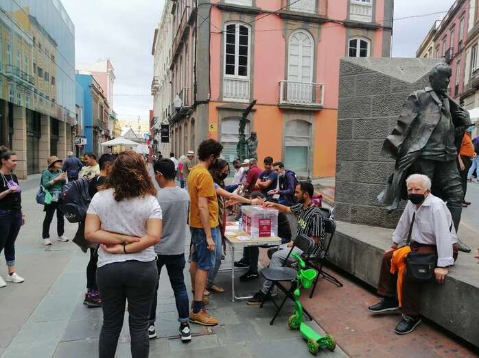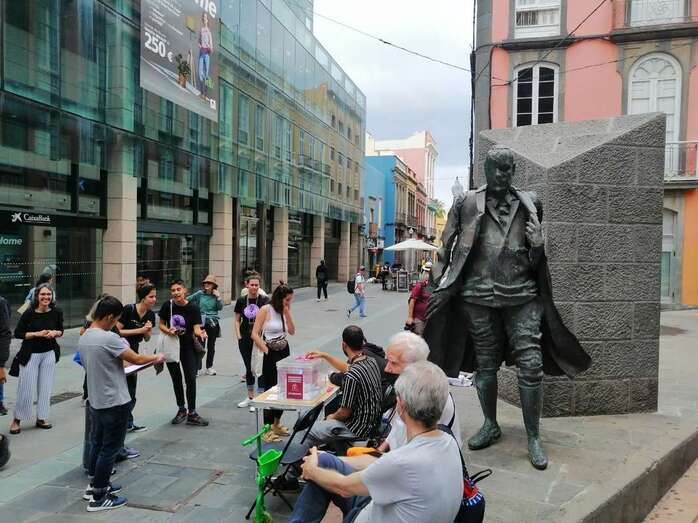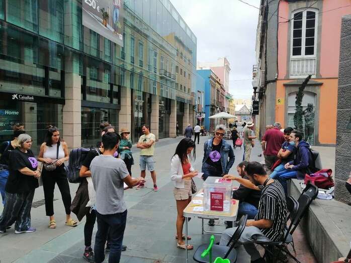 A una de las mesas instaladas en Santa Cruz de Tenerife, en la plaza de la Candelaria, se acercan personas que ya conocían la convocatoria de esta consulta no vinculante y también viandantes que deciden, sobre la marcha, participar.