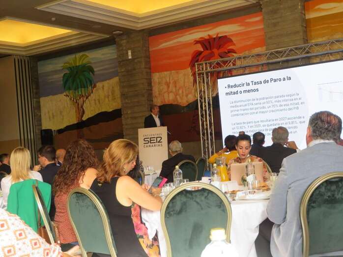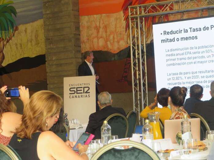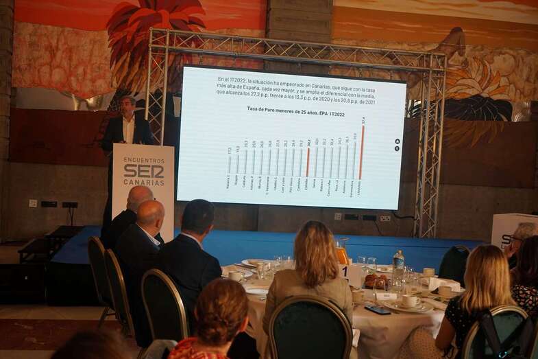 Ha explicado además que las consecuencias económicas de la pandemia han tenido un impacto más severo en Canarias que en España con un PIB que se desplomó un 18 % en 2020 y que ha llevado a las islas a la cola, también en la productividad del trabajador y a la tasa de paro más alta del Estado, principalmente en menores de 25, que es "algo que lastra el futuro y genera frustración", lo que lleva a que "la inversión en formación y el talento en el que se invierte en las islas se vaya fuera".