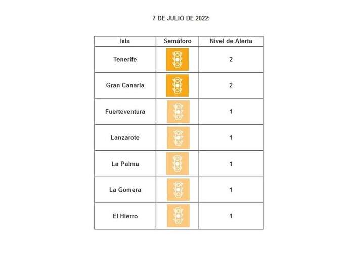 Según este informe, Tenerife sube a nivel de alerta 2 ante la evolución del indicador de uso de camas convencionales, ya que la utilización de camas de UMI no se ha visto afectada. El resto de todas islas continúan en el mismo nivel de alerta en el que estaban: Gran Canaria continúa en nivel 2 o de riesgo medio, y Lanzarote (donde epidemiológicamente se incluye La Graciosa), Fuerteventura, La Palma, La Gomera y El Hierro en nivel 1, o de riesgo bajo.