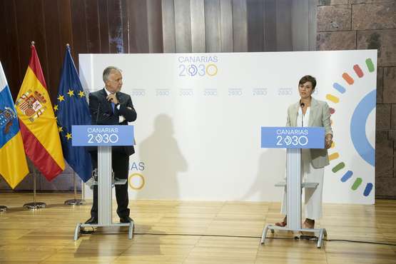 El presidente de Canarias, Ángel Víctor Torres, junto con la ministra de Ciencia e Innovación, Diana Morant, anoche durante la reunión técnica/TA.