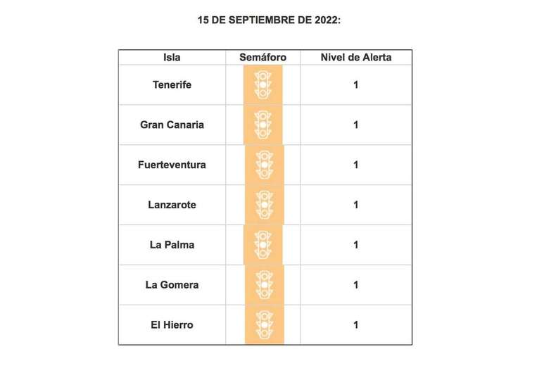 Según este informe, todas las islas continúan en el mismo nivel de alerta en el que estaban, manteniéndose en nivel 1 o de riesgo bajo.