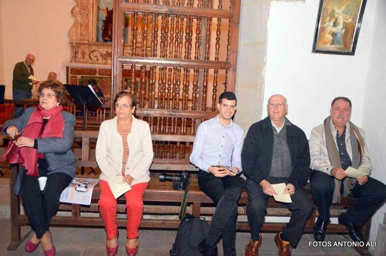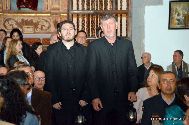 El componente de Ainur, Javier Toledo saluda al público y agradece los aplausos que hasta este tema han interpretado, exponiendo el silencio del templo cómplice de la mejor escucha, muy acogedor. Con la pieza tercera interpretada Trahe me post te de Francisco Guerrero recuerda que con la actuación de AINUR el pasado septiembre en este mismo lugar, comentó que era la pieza que iban a llevar al Concurso Nacional en Burgos con la suerte de haber sido nombrados ganadores y la de haber acompañado en aquel momento al concierto en este templo con éxito.