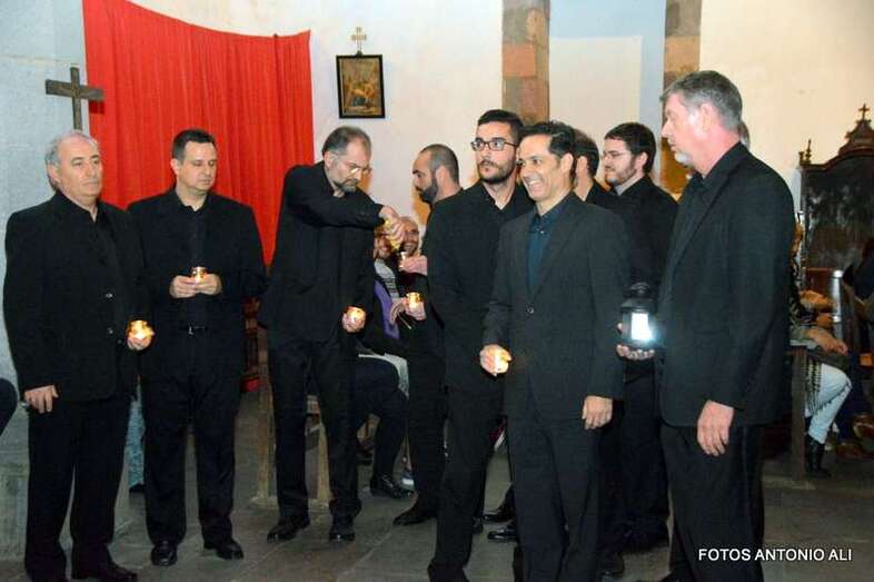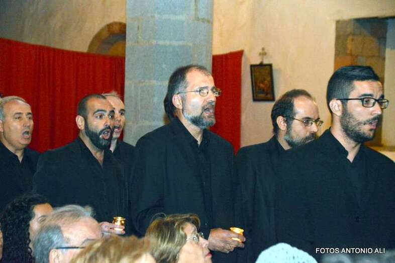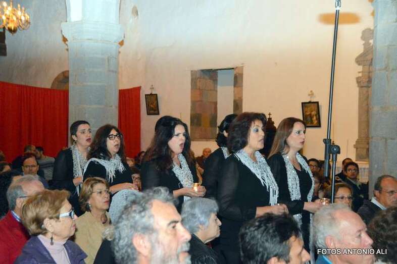 Se inicia el concierto con la intervención en el primer tema del repertorio el Coro Ainur que dirige Mariola Rodríguez Suárez, que situados para su presentación ante el trascoro de la iglesia conventual de San Francisco inician el concierto con la composición Virgo Splendens (Anónimo Libre Vermell de Montserrat). La voces femeninas cuyos primeros compases bajo el coro y en la antesala de la nave central del templo se unen en procesión con velas encendidas bajo las voces del coro masculino que interpretan la composición Media Vita (Medieval, arreglos de Michael McGlynn 1964), para recorrer el pasillo hasta situarse en el escenario definitivo en el presbiterio bajo el altar principal de este templo que ocupará la orden franciscana dedicada a Santa María La Antigua del Altozano, hoy iglesia conventual de San Francisco de Telde.