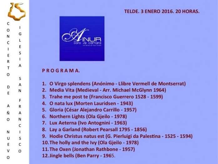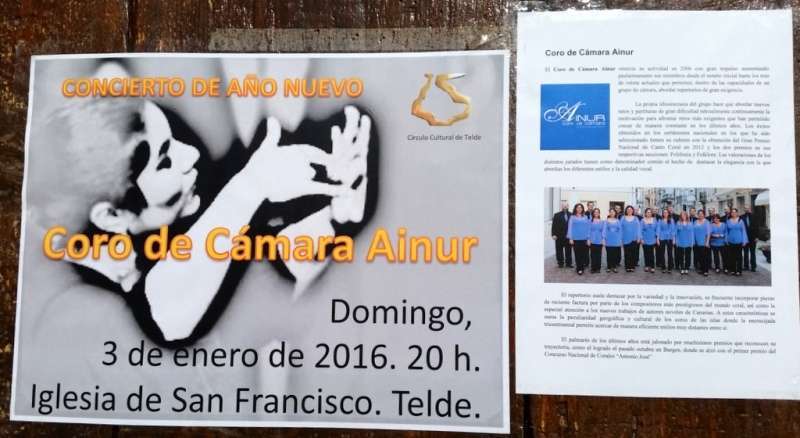 Telde.- El Círculo Cultural de Telde  comenzó este domingo por la noche a distribuir  el bloc-agenda 2016 que suele editar con motivo del nuevo año. El reparto se hizo después del magnífico concierto del Coro de Cámara Ainur que tuvo lugar en la iglesia conventual del núcleo histórico de San Francisco. TA ofrece reportaje gráfico.