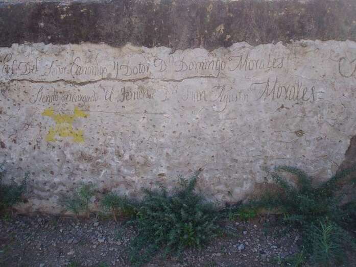 El elemento más singular son unas inscripciones, escritas con una herramienta punzante mediante la técnica de la incisión, ubicadas en la pared interior del estanque de mampostería, con el nombre del propietario, la fecha de construcción y la rúbrica de otra persona que da fe: “Es Del Señor Canonigo y Dotor Dn Domingo Morales siendo encargado el Teniente Dn Juan Agustin Morales se hiso esta el año 1843. Sebastián Ramírez”.