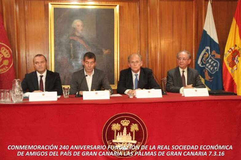 Una fecha que conmemora y recuerda los 240 años de vida de la Institución civil no gubernamental más antigua de Canarias, celebrados por la Real Sociedad Económica de Amigos del País de Gran Canaria, fundada el 4 de febrero de 1776 bajo la protección del Rey Carlos III de España, impulsada por Juan Bautista Servera, Obispo de Canarias. Siendo dirigida por figuras señeras de la sociedad intelectual, cultural, científica, eclesiástica, jurídica y política a lo largo de su historia en Gran Canaria como lo fueron José Viera y Clavijo, Gregorio Chil y Naranjo, José Mesa y López, Amaranto Martínez de Escobar, entre otros muy destacados por sus espíritus de progreso en beneficio de la sociedad canaria durante el siglo XX, y el actual XXI. Enhorabuena. Muchas gracias.