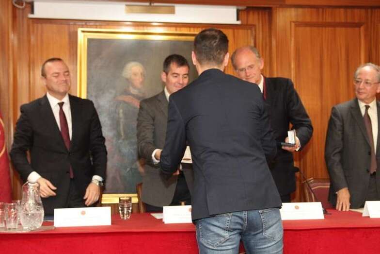 Se procede a la entrega de los Premios Gran Canaria 2016 de la Real Sociedad Económica que presenta el miembro de la Junta Directiva don José Luis Gago, dando lectura al acta de reconocimientos en sesión celebrada por la Junta de Gobierno de la Institución el 14 de diciembre de 2015, Premios que han sido concedidos a D. Arcadio Domínguez en reconocimiento por los méritos contraídos en la modalidad de Diseño. A D. Pedro Mujica en la modalidad de Creatividad Tecnológica. A la tenista doña Carla Suárez Navarro en la modalidad Deportiva, premio recogido por su madre al encontrarse ausente la deportista en Estados Unidos.