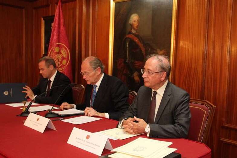 “Excmo. Sr. Presidente del Gobierno de Canarias, Excmo. Sr. Director de la Real Sociedad Económica de Amigos del País de Gran Canaria. Señor Alcalde y demás autoridades, Señoras y Señores. Muchas gracias en primer lugar por la presentación que ha hecho el director de esta Real Sociedad Económica, y lo primero que tengo que decir que para mí es un honor participar en esta celebración del 240 aniversario de la fundación de esta Real Sociedad Económica, precisamente cuando se cumple también el tercer centenario del nacimiento de Carlos III, que fue el monarca protector de estas sociedades, impulsor de las mayores iniciativas culturales y de progreso que se dieron en nuestro siglo de las luces. Es también un honor en hacerlo además en representación de la Real Academia de la Historia, la cual doña Carmen Iglesias y yo mismo hemos tenido la iniciativa hablando con el señor secretario de la Real Sociedad Económica, el tener presente una copia muy bonita, muy bien hecha de todo el expediente que obra en la Academia del expediente de Viera y Clavijo que incluye el manuscrito en su forma, la oración gratulatoria. Es decir el discurso de entrada en la Academia, no en el año 1777 como miembro supernumerario, sino el de la primera entrada el 25 de febrero de 1774, como correspondiente, pasando más tarde a supernumerario.