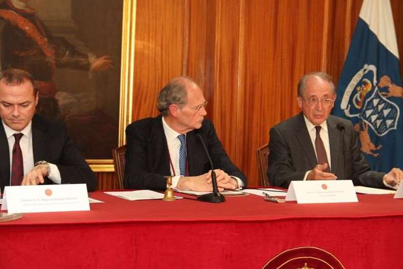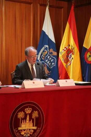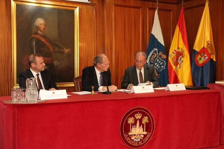 Quiero agradecer la presencia del Sr. Presidente del Gobierno de Canarias, don Fernando Clavijo que ha tenido la deferencia de visitarnos con motivo de esta conmemoración. Su importante representación política indica que la máxima autoridad de la Comunidad Autónoma de Canarias se une a nosotros para evocar juntos a tantos ilustres amigos del país de tiempos pasados. Y nos estimula pensar que nosotros podemos ser capaces de continuar esta dedicación en el presente histórico.