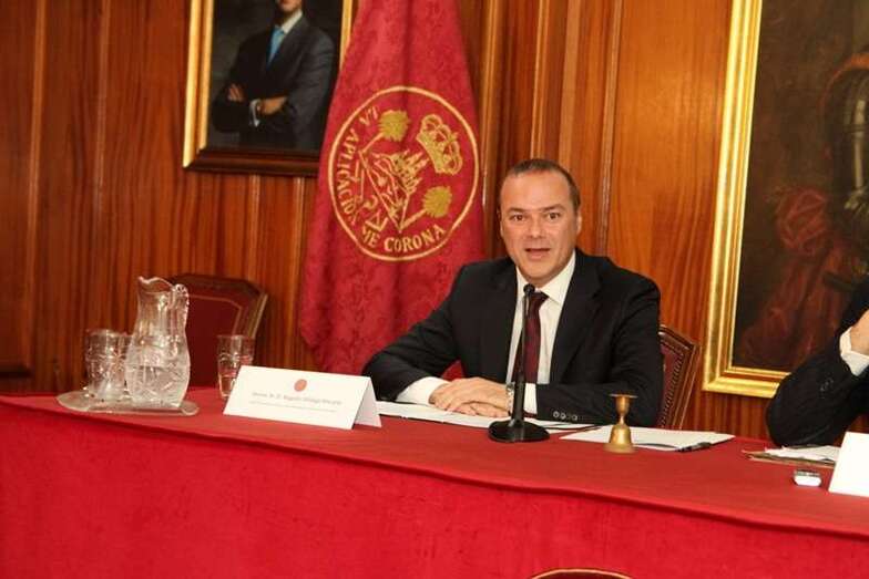 “Director de la Sociedad, Sr. Obispo, Consejeros del Cabildo, Autoridades militares, Subdelegado del Gobierno, Premiados y nuevos ingresados en la Sociedad. Felicitar la lección académica del profesor Pérez Moreda que además contiene un guiño final a la realidad política que vivimos estos días. Cada vez que vengo a la Real Sociedad Económica quiero hacer una referencia al cuadro del Rey Carlos III que preside esta sala, y la época de las luces en una referencia insoslayable de aquella época de luces de influencia de la Ilustración que se tornó negro y se apagó con la llegada de Carlos IV, el miedo a la revolución francesa, José I, la guerra y con Fernando VII el apagón total.