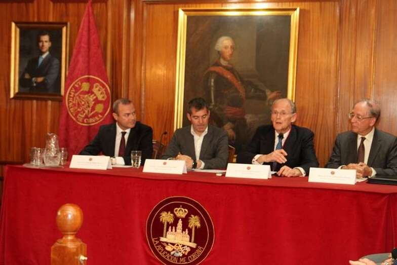 Como alcalde de esta ciudad no podía dejar de estar presente en este significativo acto, pues la relación de este Ayuntamiento con la Real Sociedad Económica del País, desde los mismos comienzos, no sólo ha sido estrecha, efectiva, y muy benéfica para esta Ciudad y su progreso, sino que además hemos compartido casa. La Real Sociedad ubicó su sede social en las propias Casas Consistoriales hasta el año 1842, y en la actualidad también compartimos la propiedad y gestión de este esplendido edifico obra del arquitecto Zuazo, donde nos encontramos hoy.