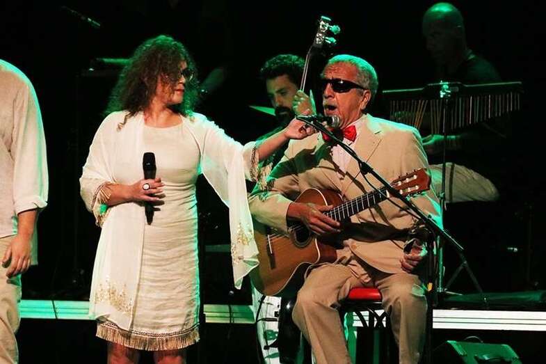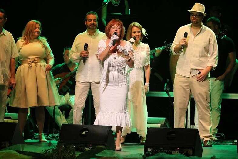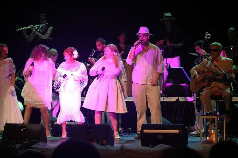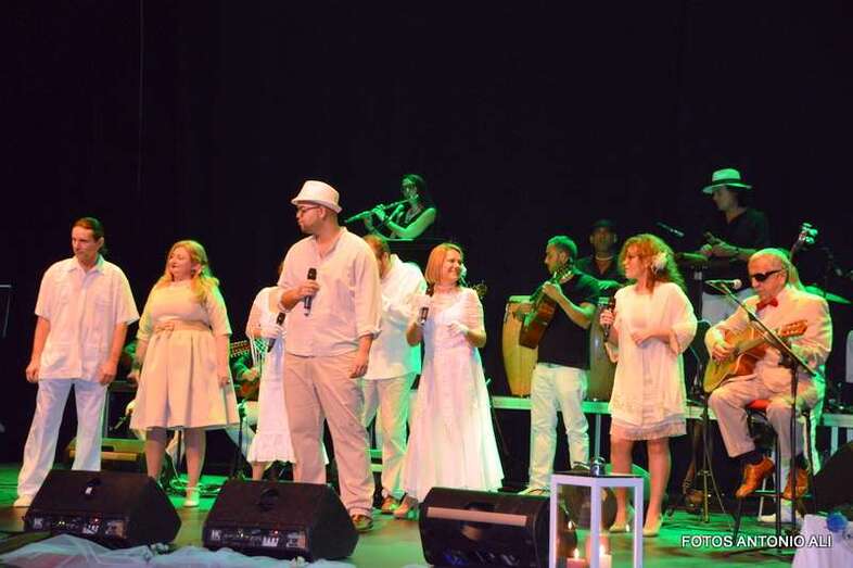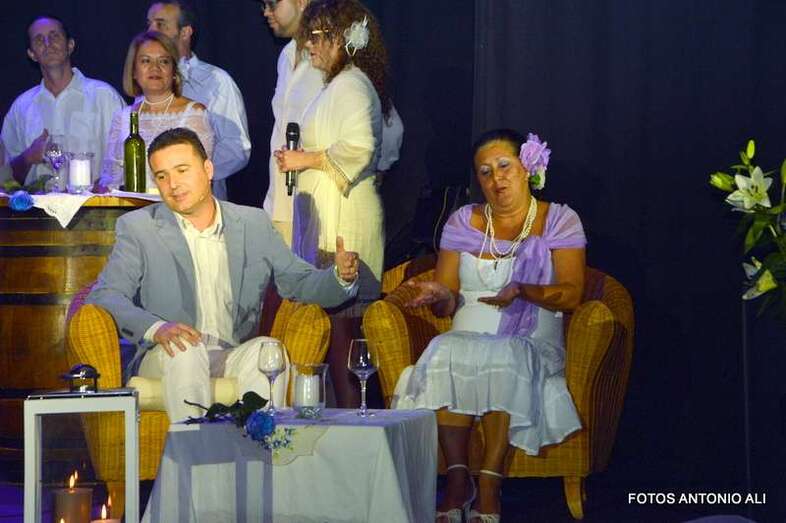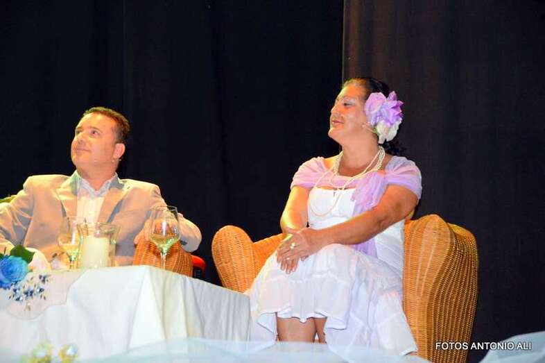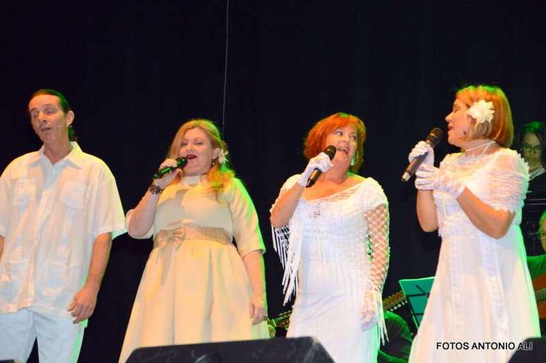 Durante la hora y media que duró el espectáculo, se intercaló el texto teatral con temas tan conocidos como ‘Cómo fue’, ‘El día que me quieras’, Un minuto de tu amor’, ‘Tómame o Déjame’ o ‘Gran Canaria’. Temas que junto a los textos teatrales cuentan la historia de amor de Emilio y Hermenegilda con la complicidad de su amigo Falcón.