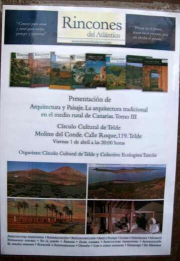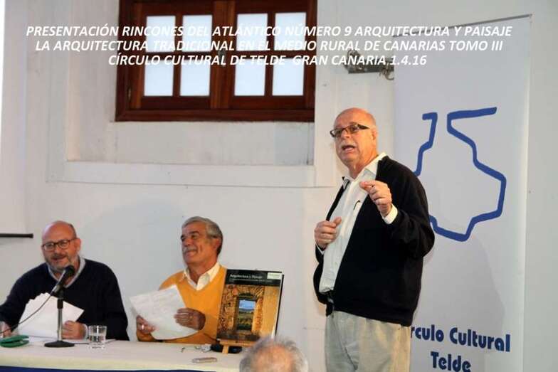Acto organizado por el Círculo Cultural de Telde y el Colectivo Ecologista Turcón para dar a conocer este último trabajo de suma importancia dentro de la investigación de la cultura canaria la arquitectura tradicional en el medio rural de Canarias, extraordinaria obra presentada y coordinada por Daniel Fernández Galván y Arnoldo Santos Guerra. El jueves 31 de marzo hizo su presentación en el Club La Provincia de Las Palmas de Gran Canaria.