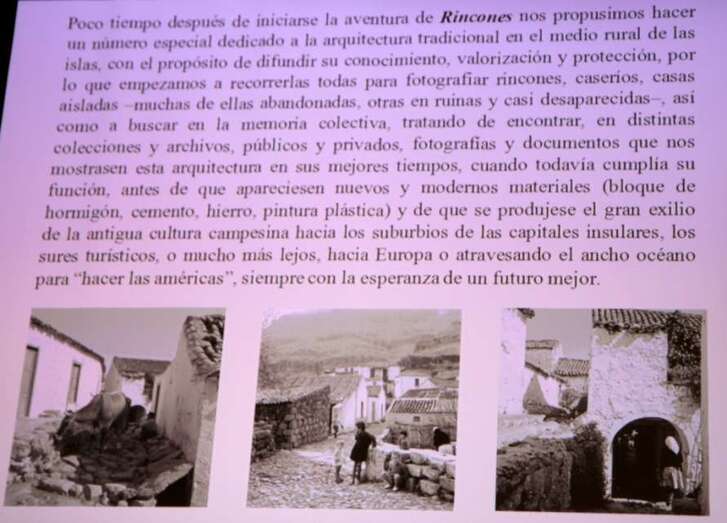 El desarrollo del sector primario va unido a la valoración y conservación de la arquitectura tradicional y del patrimonio en general. El primer paso para valorar, proteger y conservar nuestra arquitectura tradicional es conocerla. Como tradicional, esta arquitectura transmite el conocimiento y los valores de nuestro pasado que se fueron transmitiendo generación tras generación; es una parte imprescindible de nuestras raíces culturales.  Este elemento patrimonial, tan unido al paisaje eminentemente agrícola de las islas, se inserta como uno de los bienes  esenciales para conservar lo local, nuestra cultura, tradiciones y memoria frente al vacío y a la clonación y homogeneización del mundo globalizado. ¿Qué señas de identidad, qué memoria, qué pasado y qué presente dejaremos a las futuras generaciones y a quienes nos visitan si seguimos maltratando nuestro territorio y dejamos que desaparezca de nuestro paisaje y patrimonio?, ¿qué les quedará?, ¿la nada?, ¿el “no lugar”?