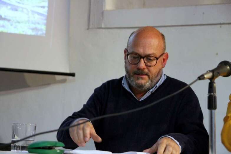 Fernando Ojeda Pérez componente de la Junta directiva del Círculo Cultural de Telde da la bienvenida a Fernández Galván y Santos Guerra y al público asistente a este acto cultural que dan a conocer esta publicación en su Tercer Tomo exponiendo en los textos y en la proyección de numerosas y magníficas imágenes que por su calidad y diversidad temática hablan por sí solas.