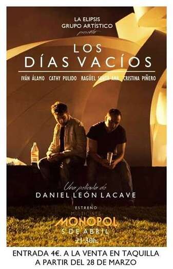 Telde.- Los Multicines Monopol acogen esta noche (21.30 horas) el estreno absoluto de 'Los días vacíos', segundo largometraje del director Daniel León Lacave , quien cuenta con Pablo García Gallego como director de Fotografía , cámara y co-productor; con Daniel Mendoza como director de sonido y una larga lista de profesionales que conforman el equipo técnico y artístico de esta película, realizada de forma totalmente independiente y rodada en varios puntos de Telde.