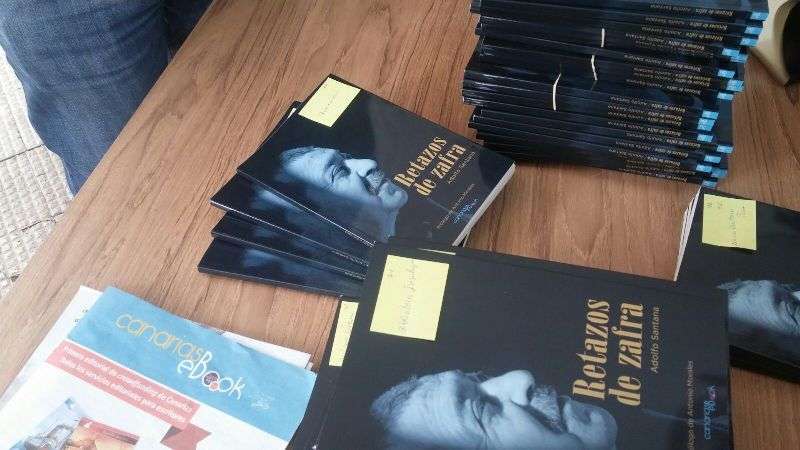 El acto de presentación en sociedad de Retazos de zafra se desarrolló a partir de las 11.00 horas en la Carpa Pedro Lezcano, situado en el Parque San Telmo, con presencia de su esposa Nieves Suárez y sus dos hijos  Juan y Gara, que firmaron ejemplares de la publicación prologada por Antonio Morales, actual presidente del Cabildo .