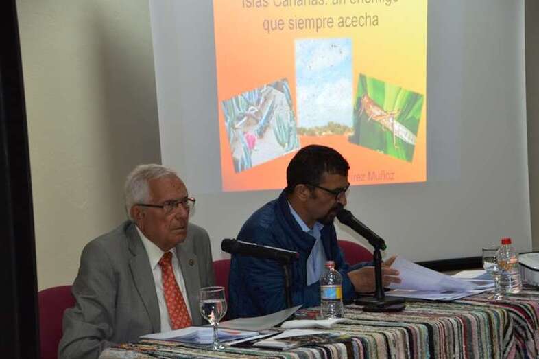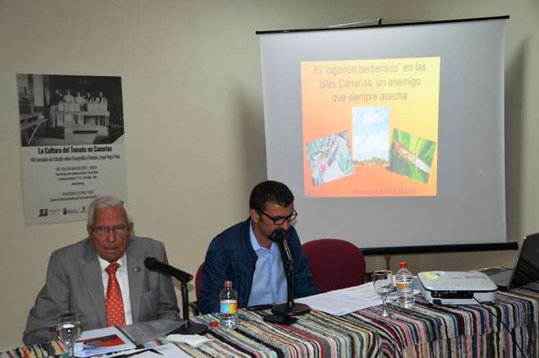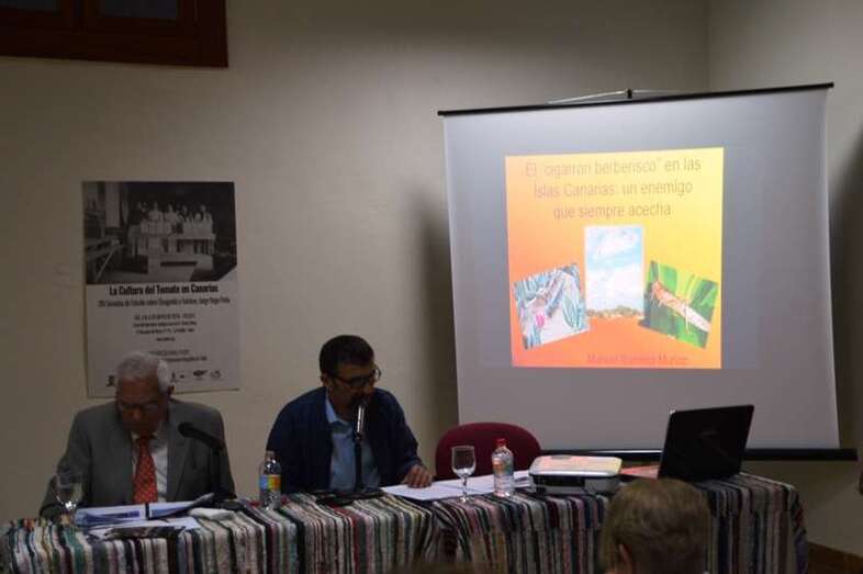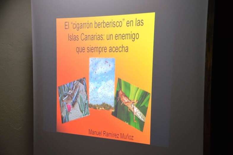 En la segunda ponencia, las frecuentes arribadas a la Isla del cigarrón berberisco y su amenaza constante para la agricultura fueron objeto de exposición por Manuel Ramírez Muñoz, Graduado Social; licenciado y doctor en Geografía e Historia por la UNED; profesor del Centro Asociado de la UNED en Las Palmas de G.C. e investigador.