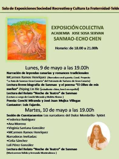 Telde.- La sala de exposiciones de La Fraternidad acoge una muestra pictórica colectiva en honor a la escritora china Echo Chen San Mao. La iniciativa parte de la academia José Sosa, que ha desplegado también una serie de actividades complementarias previstas para las 19.00 horas de este lunes y mañana, martes 10.