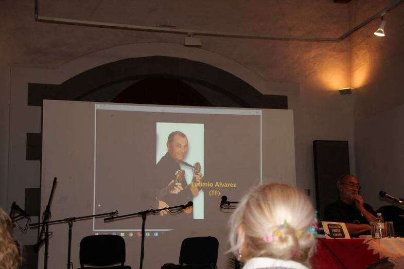 En la sesión de ayer, Miguel Ricarte Afonso, estudioso del timple y secretario de la Asociación del Timple Canario, habló en una interesante charlae sobre la evolución de este instrumento musical canario, un acto en el que también intervino el constructor de timples y de otros instrumentos musicales, el teldense Francisco Ramírez Galindo.