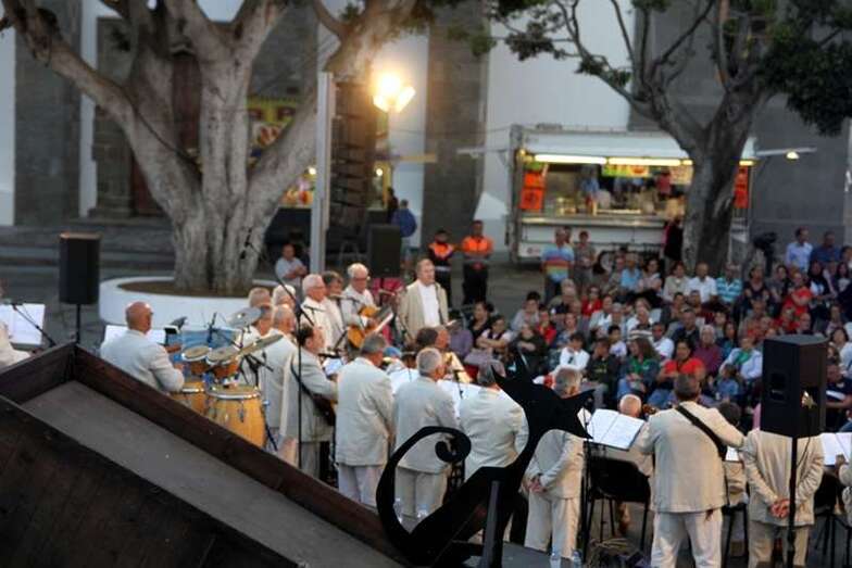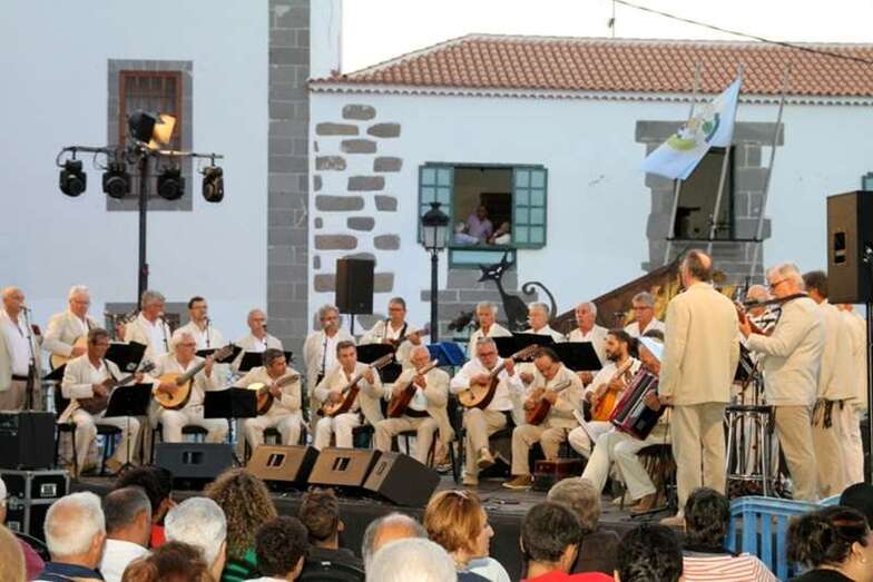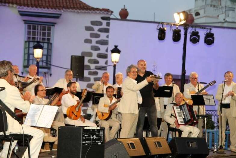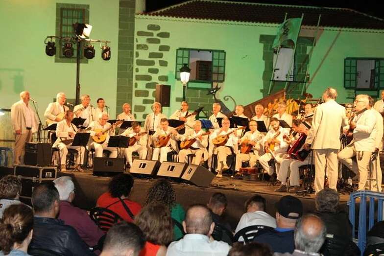 Durante la actuación fueron presentados por el historiador de Canarias, componente del Grupo de Música Popular, Felipe León. Como primer tema de las 21 composiciones elegidas inician el repertorio con, Por Santo Domingo. El conocido tema instrumental Pájaro Campana, interpretado por el solista instrumentista a las cuerdas de su requinto, Pedro Segura, acompañado por guitarra y percusión. Tercera composición, la Polka de los Novios, que se estrenó en Prensa Canaria, con letra de la ex concejala de Cultura del Ayuntamiento de Telde, Guadalupe Santana y música de Faycanes. Con acento canario, tema de Antonio Cejudo y Ñito Betancort, compases de isa con acentos propios de canariedad para celebrar en este San Juan fundacional y patrono. Una composición de Toni Sosa y Maso González, dedicado a Villaverde, zona de Fuerteventura. Continuando con temas canarios, Isa Majorera, del folclore majorero. Las siempre emotivas y de preciosos versos de las Folías Modernas.