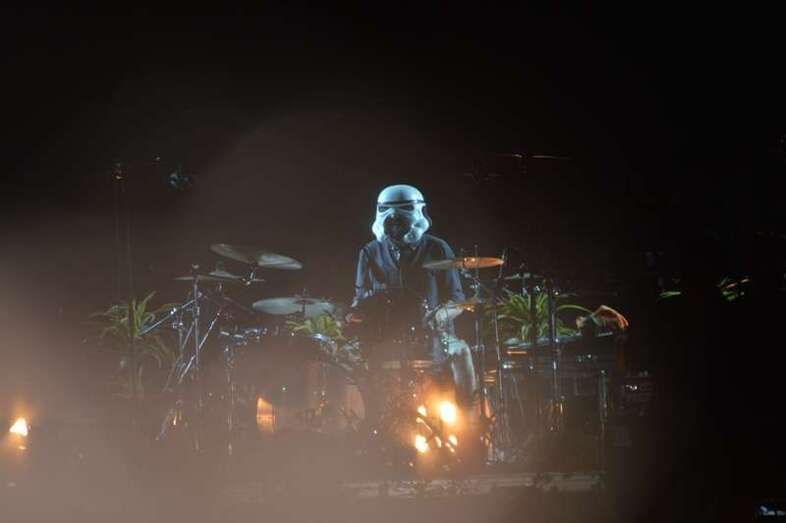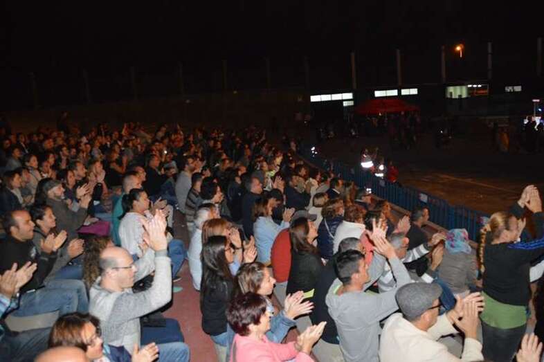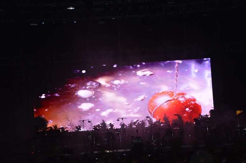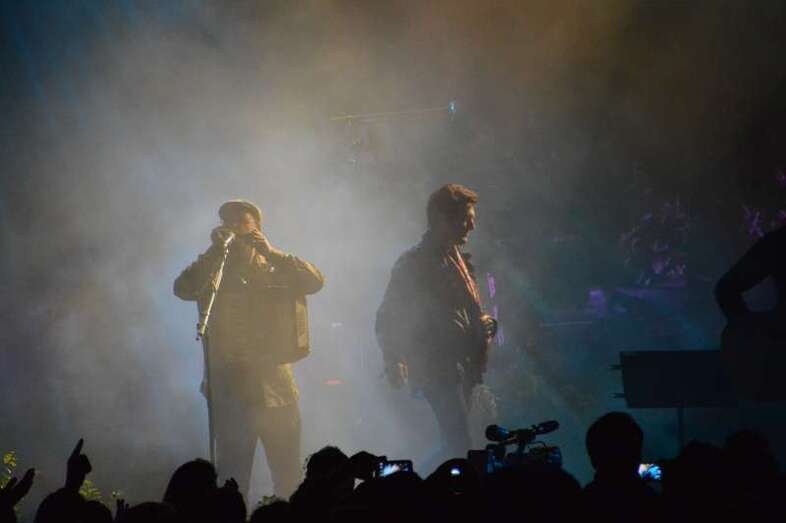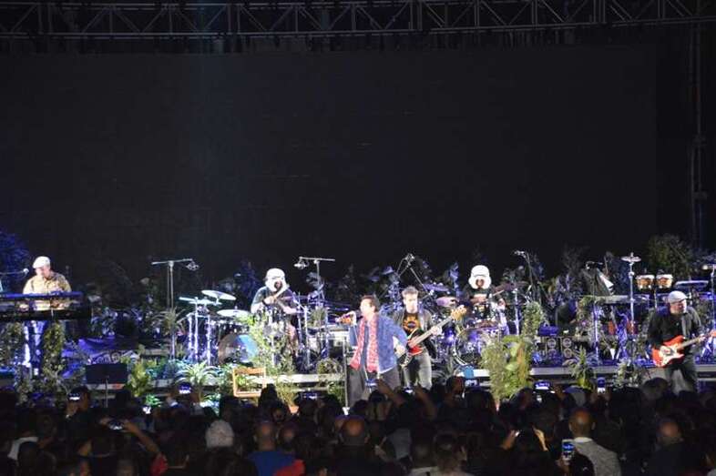 De los orígenes a lo más reciente: San Gennaro y Campanas de libertad fueron las dos canciones que abrieron el concierto, después de la proyección en el escenario de un mini corto protagonizado por una multitud de huevos, huevos en tribu, cosidos, fritos, aplastados, colgados, que situó al público entre la risa y un divertido desconcierto. Fue el arranque de la fiesta, que ya no cesó durante una auténtica maratón de canciones.