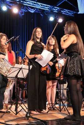 El broche final estuvo a cargo del aula de violín, el coro de adultos y del coro del IES Ingenio dentro de un proyecto de colaboración con la EsMut, que magistralmente interpretaron el conocido tema The show must go on, de la banda británica The Queen, dirigida por la Profesora Beatriz Bordón.