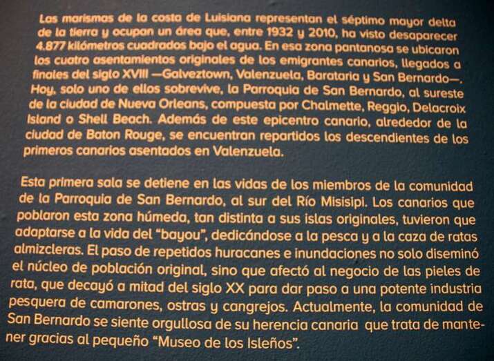 Entre 1778 y 1783 aproximadamente 2.500 canarios viajaron a la entonces Luisiana española para defender el recién adquirido territorio de las tropas británicas. Familias enteras de las distintas islas emprendieron un viaje hacia una tierra húmeda, llena de pantanos y a merced de frecuentes inundaciones. Cuatro fueron los asentamientos de los canarios alrededor de la ciudad de Nueva Orleans. Galveztown, Barataria, Valenzuela y La Concepción, más tarde renombrada como Parroquia de San Bernardo. De los cuatro, solo sobrevive el último, epicentro actual de los canarios de Luisiana, donde actualmente se encuentra el Museo de los Isleños. Si bien Luisiana dejó de ser colonia española en 1803, el español de Canarias se ha mantenido hasta nuestros días, aunque de forma cada vez más escasa y en peligro de extinción.