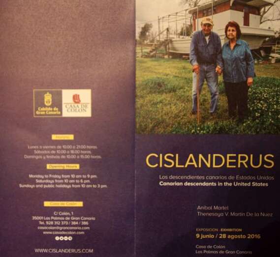 Este es el caso que trata la interesante exposición Cislanderus, Los descendientes canarios de Estados Unidos, que desde el 9 de junio hasta el domingo 28 de agosto de 2016 se exhibe en la Casa de Colón de Las Palmas de Gran Canaria, centro americanista del emblemático barrio capitalino de Vegueta, en una magnífica y amplia muestra fotográfica realizada por Aníbal Martel y Thenesoya V. Martín De la Nuez. Excepcional trabajo fotográfico y de investigación-edición que el fotoperiodista Aníbal Martel (Gran Canaria, 1978). Fotógrafo por la Escuela de Arte y Superior de Diseño de Gran Canaria, se especializa en la Escuela Superior de Comunicación, Imagen y Sonido de Madrid (CEV) y estudia Ciencias de la Información en la Universidad Complutense de Madrid. Ha desarrollado desde su carrera profesional como fotógrafo independiente en diferentes medios impresos, digitales, agencias de prensa, revistas y prensa internacional (www.anibalmartel.com).