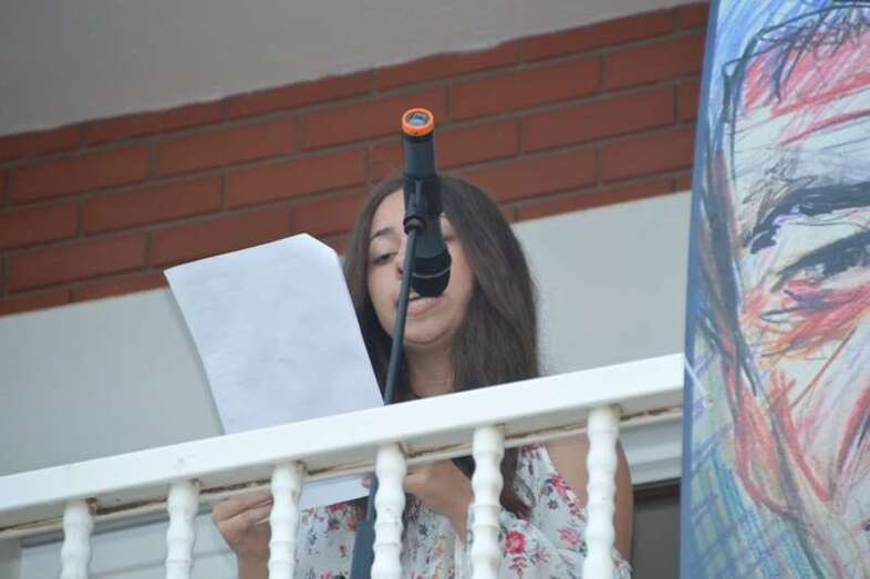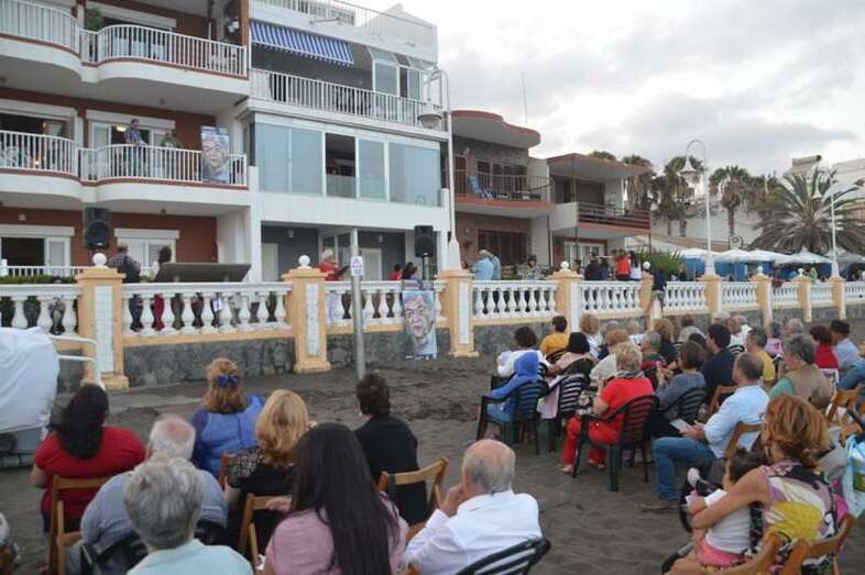 Presidido por un gran cartel con el rostro de Natera, realizado por el artista José Sosa Serván, que colgaba del balcón del inmueble de veraneo de Natera, el acto, presentado por Mari Carmen Ramos y organizado por la Concejalía de Cultura –que dirige la concejala Marta Hernández- y la empresa pública Gestel, se desarrolló en la trasera del número 61 de la calle Americo Vespucio, justo delante de la que fue la casa del poeta.
