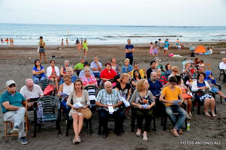 Telde.- Un festival lírico y musical rescató esta tarde-noche en Salinetas la figura de poeta grancanario Luis Natera, hijo adoptivo de la ciudad. Un amplio grupo de personas recitó sus poemas y el cantautor Luis Fajardo puso las notas musicales a una velada que congregó en la arena y paseo de esta playa teldense a un concurrido grupo de personas.