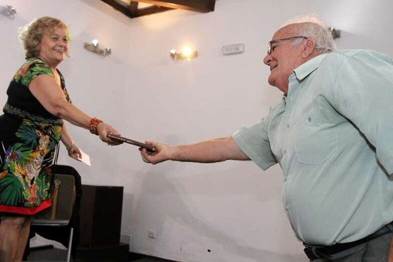 Susi Arencibia en camino de su total recuperación después de una larga trayectoria en la que su estado de salud la tuvo apartada de su tarea y responsabilidad en las Veladas Poéticas agradeció la asistencia y animó a asistir en las próximas citas. Presentó un libro regalo de un amigo que recomendó su lectura, “Al amigo que no me salvó la vida”, del Círculo de Lectores, autoría del escritor francés Hervé Guibert. Al contar con dos ejemplares sorteó entre los asistentes uno de ellos, siendo el agraciado el siempre afable, excelente persona y mejor dispuesto en su colaboración literaria a recitar los mejores versos de su vida, el amigo José Suárez.