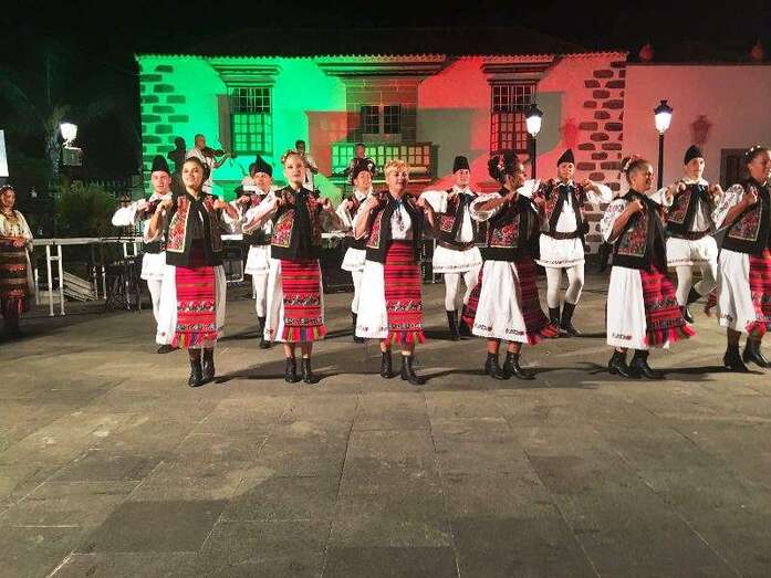 La plaza de San Juan acoge con éxito un festival internacional con la actuación de grupos rumanos, serbios, portugueses y canarios