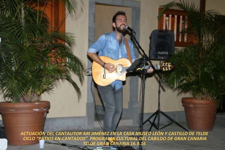 Telde.- Aplaudida actuación la protagonizada el pasado viernes por el cantautor Ari Jiménez en la Casa-Museo León y Castillo. El artista sembró el patio de sus notas melódicas para deleite de los presentes, en una velada desarrollada en el marco del ciclo de conciertos Patios En(Cantados).