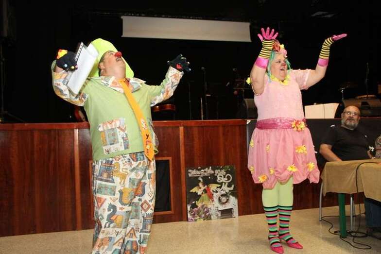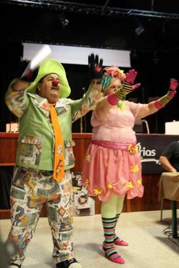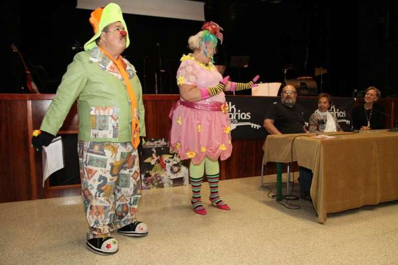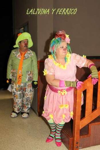 Lalivina y Ferrico dos extraordinarios narradores que dan vida a unos payasos, y se dan la mano para recorrer los relatos del cuento que van describiendo, sin dar demasiadas pistas en su escenificación para que el lector, la lectora, el niño, la niña, los adultos, los mayores, se recreen en cada línea manuscrita y cada ilustración -a todo color- impresa en las hojas y creadas por la imaginación infantil, a veces asombrosamente artística de quienes, ellos, los escolares, nos llevamos sorpresas al exponer la idea de lo narrado en formas y figuras dibujadas.