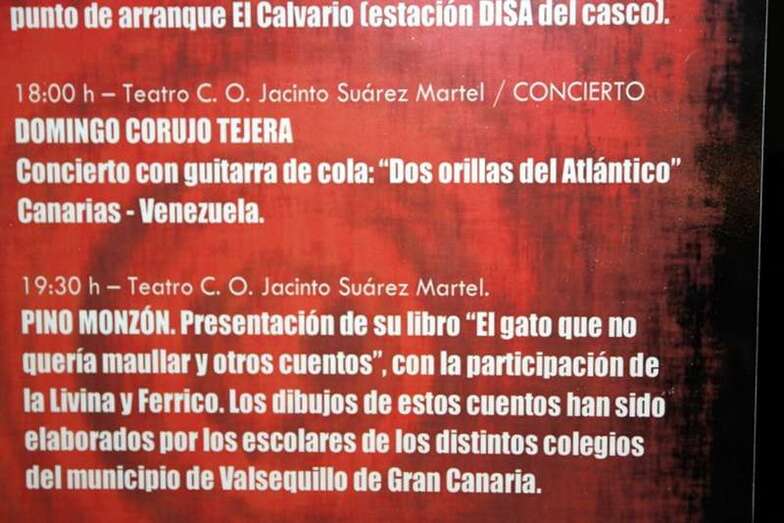 Incluida en el programa de festejos dedicado a las fiestas patronales de San Miguel en la vecina localidad de Valsequillo, ha tenido lugar la presentación del libro infantil “El gato que quería maullar y otros cuentos” de la escritora teldense Pino Monzón Padrón, acto cultural que transcurrió la tarde del lunes 26 de septiembre, en el Teatro Jacinto Suarez Martel, del precioso pueblo entre medianías y cumbrero de Valsequillo de Gran Canaria.