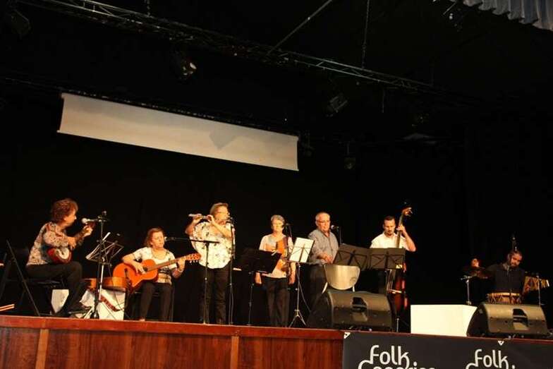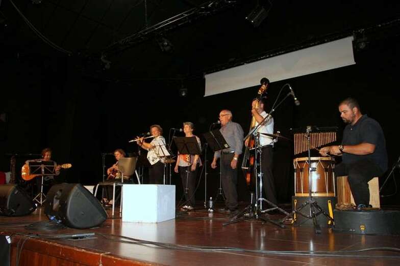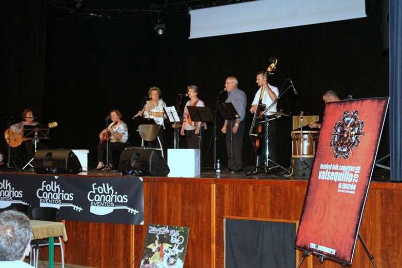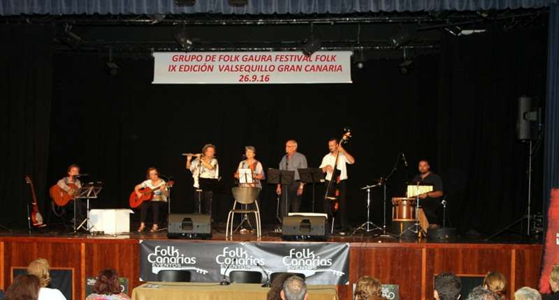 Finalizada la presentación el Grupo Folk Gaura creado en Telde hace un año dirigido por Pino Monzón, participantes en la IX Edición del Festival Folk Canarias Valsequillo 2016, agrupación musical formada por Santi al contrabajo, Nacho en la percusión, Mari Sari en la guitarra acompañamiento y coro, Roser en la flauta travesera, las dos voces, cantadores solistas y dúo, Fefina y José Manuel, y Pino que dirige el grupo tocando la guitarra y el banjo, ocupan el escenario para ofrecer un repertorio de música basada en temas tradicionales infantiles y otros conocidos temas regionales: Eres alta y delgada. El canto recogido del cancionero español, Si tu madre. Como tercera interpretación El Mandil de Carolina. La siempre recordada letra del cancionero español, Tres hojitas madre. El tema de origen cántabro muy difundida por la península y Canarias, Esta noche ha llovido. García Lorca se basó en unas antiguas coplas populares, La tarara. Gaura en esta actuación estrena en este repertorio un tema nuevo, Paloma del palomar…..paloma del palomar que el amor vas a buscar…, estrofas que hacen referencia a las labores del campo.