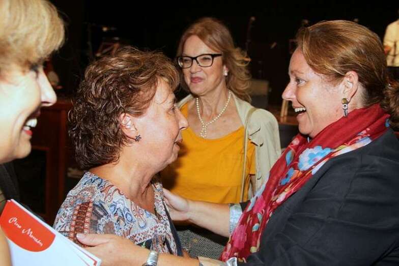 La Concejal Elvira Vaquero expresa el agradecimiento y excusas por el retraso en el comienzo de esta presentación; “He conocido a Pino al pasar este año por el colegio a presentarnos su trabajo basado en este cuento y la idea de que nuestros alumnos de los colegios de Valsequillo participaran con sus dibujos en la preparación de este libro que presentamos esta tarde. Hemos trabajado este libro en los colegios y como maestras que hemos sido Pino es un ejemplo de trabajo y ejemplo en estas ediciones infantiles. Muchas gracias”.