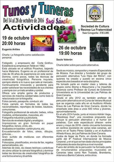 Telde.- La sala de exposiciones de la Sociedad de Cultura y Recreo La Fraternidad acogerá desde esta noche, a partir de las 20.00 horas, la muestra pictórica 'Tunos y Tuneras', de la teldense Susi Sánchez. Además de la exhibición, se contará con varias actividades a lo largo de estos quince días, destacando las charlas 'La fotografía como satisfacción personal', a impartir el próximo miércoles (20.00 horas) por Eugenio Artiles, empresario teldense y propietario de El Corte Gráfico, y la de 'Percusión alternativa', que tendrá lugar el miércoles 26 (19.00 horas) a cargo de Saulo Valerón, músico, compositor y maestro especialista de Música.