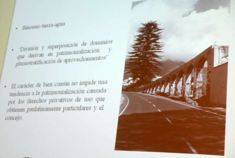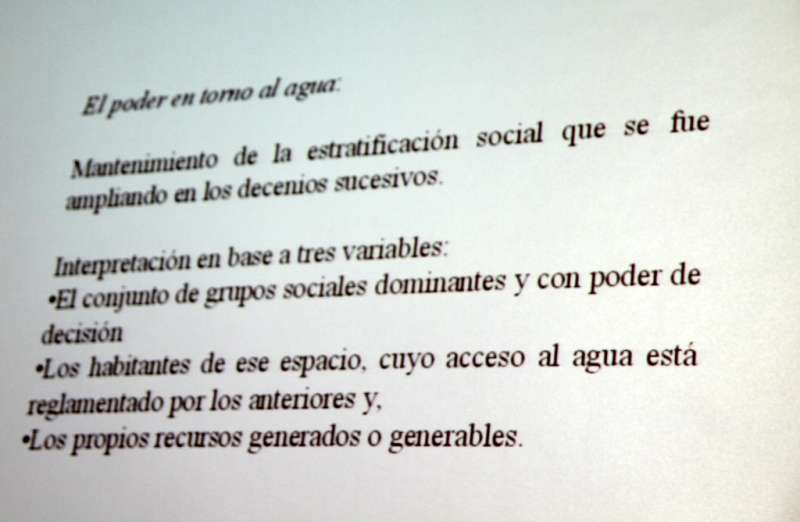No solo es la monarquía con la concesión de licencias, autorizaciones, sino sobre todo serían los Consejos municipales, entendidos como los Cabildos municipales, quienes intervendrán sobre el agua, pero no solo porque es un bien estratégico para la población, sino también y esta es una de las novedades, porque ese Consejo o Cabildo, necesita ser percibido como el órgano tutelar de lo que es el desarrollo ciudadano. De ahí que el control sobre el agua sea fuerte, pero nunca fue total, porque si algo caracteriza a la gestión del agua a finales del medievo y la Edad Moderna es lo que podemos considerar una división y superposición de dominio que derivan en patrimonialización y pluriestratificación de aprovechamientos. Esto desde nuestro punto de vista es la base que puede explicar el poder en torno al agua, división y superposición de dominio. Monarquía, Consejos, grandes propietarios de tierras, en los primeros momentos, luego, grandes propietarios de aguas>>.