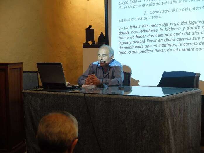 Por otro lado, hizo un repaso de las toponimias del lugar y mostró un contrato de 1556 que conveniaba el transporte de leña desde pozos del izquierdo (sic) hasta Telde.
